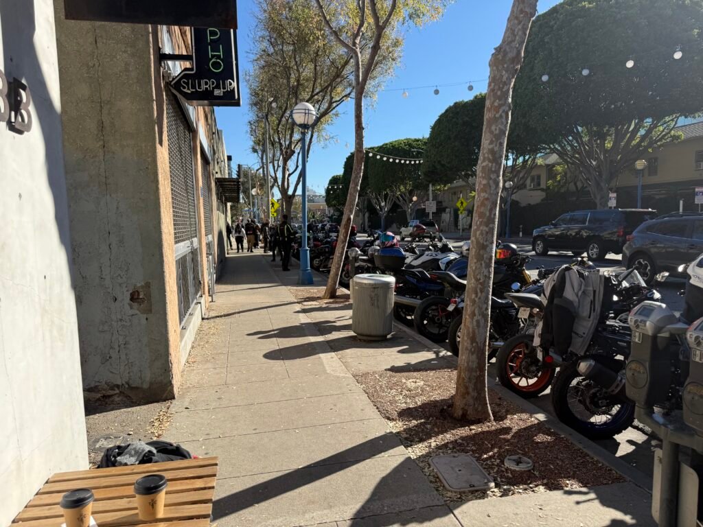 Once everyone was ready, the massive pack of bikes roared to life. We thundered through the streets of Beverly Hills, making our way up to Glendale. Our destination? The Brew Yard brewery. It was a sight to behold, seeing that many bikes rolling together, a testament to the amazing community that motorcycling builds. The brewery was a perfect midday stop, offering a great atmosphere to relax, chat with fellow riders, and enjoy tacos.