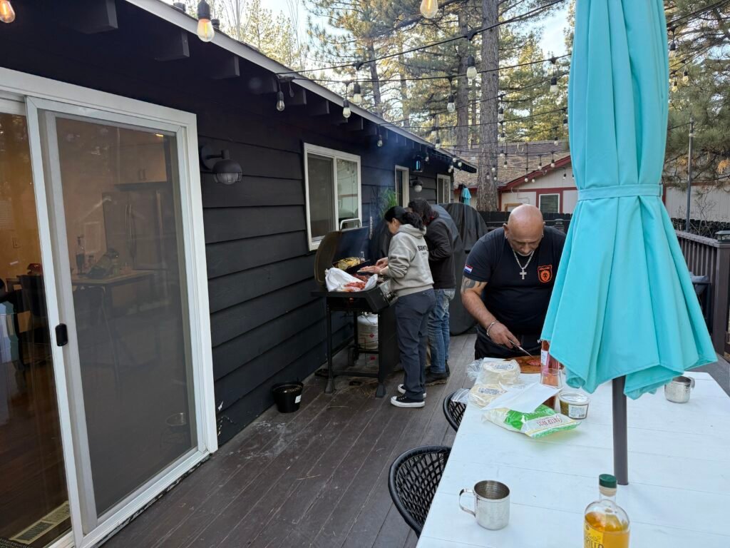 In Big Bear, our group of 12 people and 8 motorbikes settled into a cozy Airbnb. Despite the near-freezing weather, we eagerly hopped into the hot tub, a perfect way to unwind after the ride and enjoy the crisp mountain air.